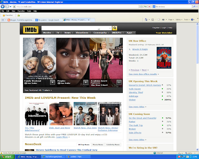 From looking at reviews online from IMDb and empire, and many more It made me realise I want my magazine to be online. I'd heard about a site called 'weebly' where you can create your own website, I figured because my review is going to be online why don't I just make the website. I decided I wanted my review to look like it was made for IMDb, however and this is a big however it proved more difficult than I'd thought. I can't get things exactly right through the limitations of the programme, and it's frustrating. Above is an example of what I've done, I'm now starting to feel that in the time frame and the difficulty I'm having getting it exact. I will possibly resort to just creating it on paint.net or photoshop.